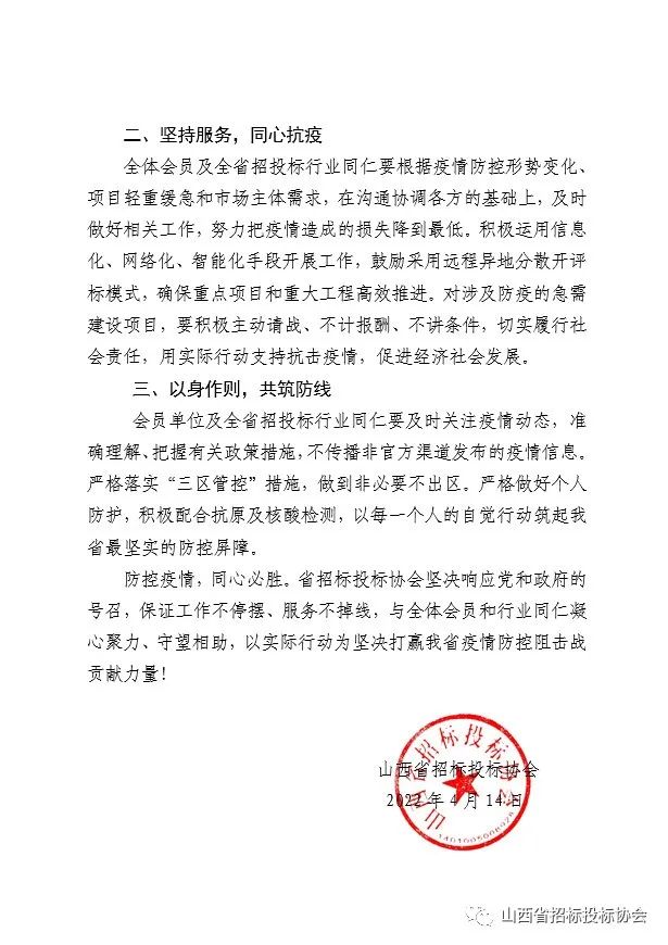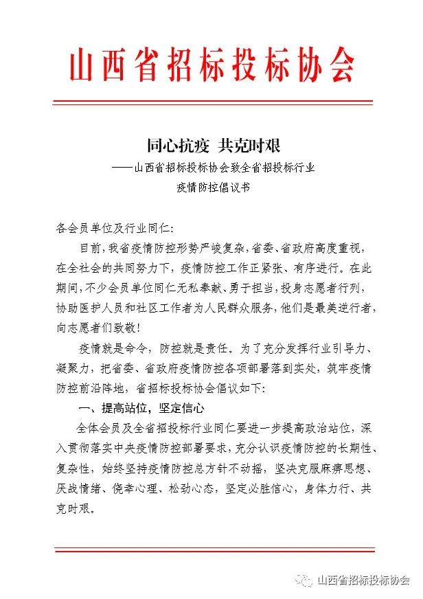 同心抗疫 共克时艰——致全省招投标行业疫情防控倡议书
