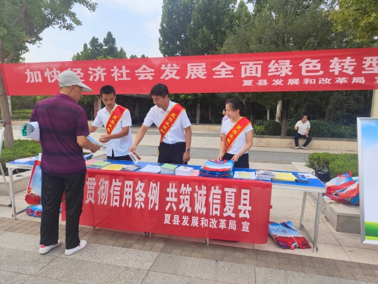 为进一步增强群众的诚信意识和信用水平,努力营造浓厚的诚信守信氛围,8月15日夏县发展和改革局以“第二个全国生态日”为契机,开展“贯彻信用条例、共建诚信夏县”宣传活动。