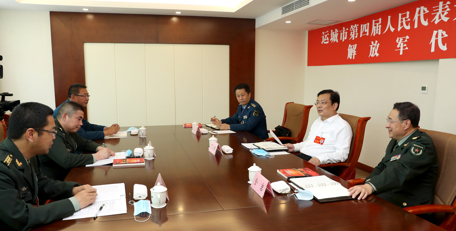 在解放军代表团,丁小强与代表们交流讨论,共同审议报告。丁小强对驻运部队长期以来为运城改革发展稳定作出的贡献表示充分肯定和衷心感谢。他指出,驻运部队要以习近平强军思想为统领,坚持政治建军、改革强军、科技兴军、依法治军,努力建设听党指挥、能打胜仗、作风优良的人民军队;要扎实推进军地协调发展、军民融合发展,持续巩固军政军民团结的良好局面,为运城高质量转型发展作出更大贡献。各级党委、政府要把支持国防和军队建设作为义不容辞的责任,解决好官兵后路后院后代问题,全力为部队改革发展创造有利条件,在全社会营造尊重军人、关心军队、支持国防的浓厚氛围。