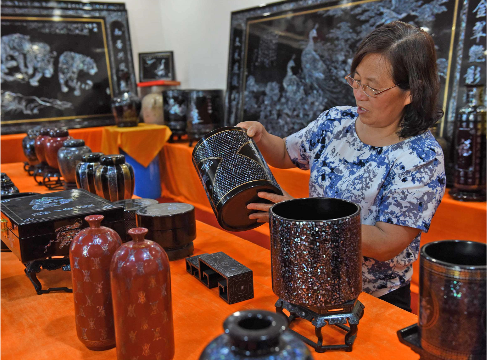 近年来,李爱珍先后接待了韩中文化交流协会、日本九州国家博物馆、泰国国家博物馆、中央美术学院、清华大学美术学院、中国美术学院等诸多知名学者和师生慕名前来交流,尤其是在2014年秋,漆器艺术泰斗乔十光先生到稷山参观了李爱珍现场制作的稷山螺钿漆器,看到金银薄片时说,“这是我第 一次看到金银平脱的材料”,乔十光先生为此专门写了一篇稷山行的文章来记载此次参观,并在《中国生漆》2015年第3期杂志上发表。多年的艰辛付出和执着追求,换来众多名家的赞誉,这更加坚定李爱珍将稷山螺钿漆器髹饰技艺传承、创新、发展的信心。