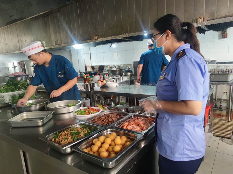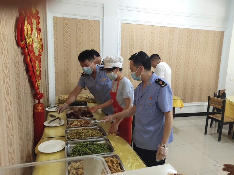 城镇市场监管所:全面细致检查,严把重点关口。平陆宾馆就餐人数多,普查期间保障任务重,保障人员提前介入,细化工作方案,分片包干,责任到人,强化风险防控。针对人员健康管理、防疫措施落实、食品原料进货贮存、餐饮具清洗消毒、食品留样等关键环节进行详细排查。