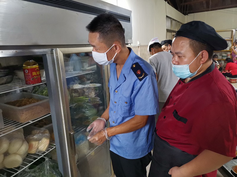 常乐市场监管所:驻点监厨 严抓操作细节。普查期间,保障人员对红门饭店就餐点全程监督,重点检查仓储、粗加工、切配、烹饪等环节,细查索证索票情况,确保食材票据齐全、来源正规。要求餐饮单位提前上报菜谱,提前审定,禁止在菜谱中加工使用四季豆、生鲜黄花菜、来历不明的野菜等高风险食品。
