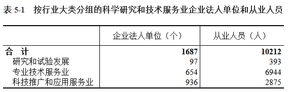2018年末,全市共有科学研究和技术服务业法人单位1855个,从业人员13155人。其中,企业法人单位1687个,从业人员10212人,分别比2013年末增长522.51%和123.80%(详见表5-1)。