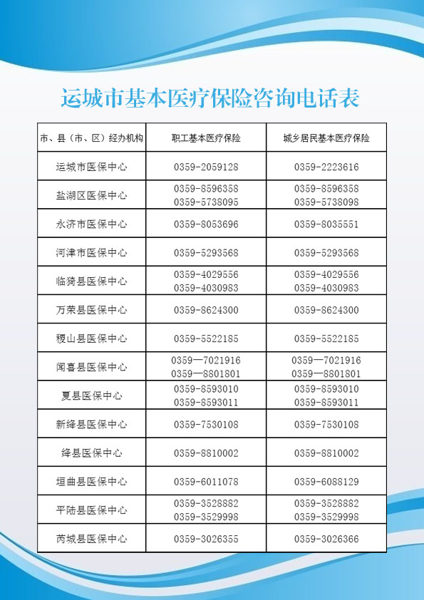运城市医疗保险服务中心服务大厅办公地址:运城市红旗东街324号(市财政局对面)