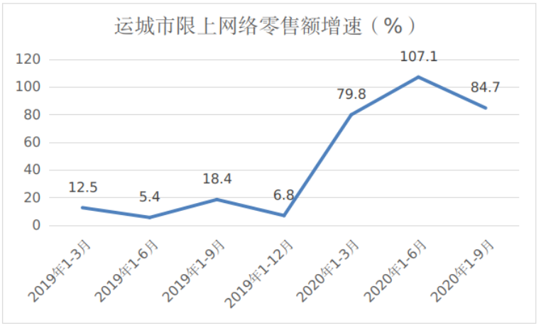 2020年以来,运城市网络商品零售额持续保持高速增长,在新冠疫情对社会经济全面冲击的大背景下凸显了自己的存在。