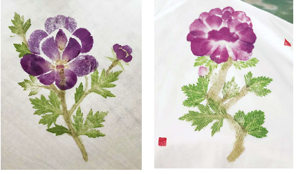 李建肖大师于2013年创办了个人工作室,位于运城市盐湖区红旗东街,主要经营书画和剪纸艺术作品,旗下有剪纸和草花印染技艺两个非遗项目。工作室致力于传统剪纸艺术的交流与传播,希望剪纸艺术走进千家万户,走入大众生活。特别值得一提的是,迈进李建肖大师工作室,更是步入一个草花印染的世界,一片白布,一把橡皮锤,几片花草,这几件看似平淡不奇的东西,就构成了草花印染这项传统工艺的全部。通过采集自然界植物的叶、花、果等天然植物做染料,精心设计图案、色调,经过捶打加工,形成各种图案花纹,经过整理、清洗、印染、固色等工序,制成带有不同色调和图案的布料或成品。主要图案有兰叶、松针、桃叶、柳叶、迎春花、桃花、杏花、蒲公英、白蒿、灰条等上百种自然界的花花草草 ,都可灵活展现于服饰和生活用品上。作品朴实典雅、美观大方、绿色环保、特色鲜明,让观者近距离感知草花印染技艺的神奇魅力。
