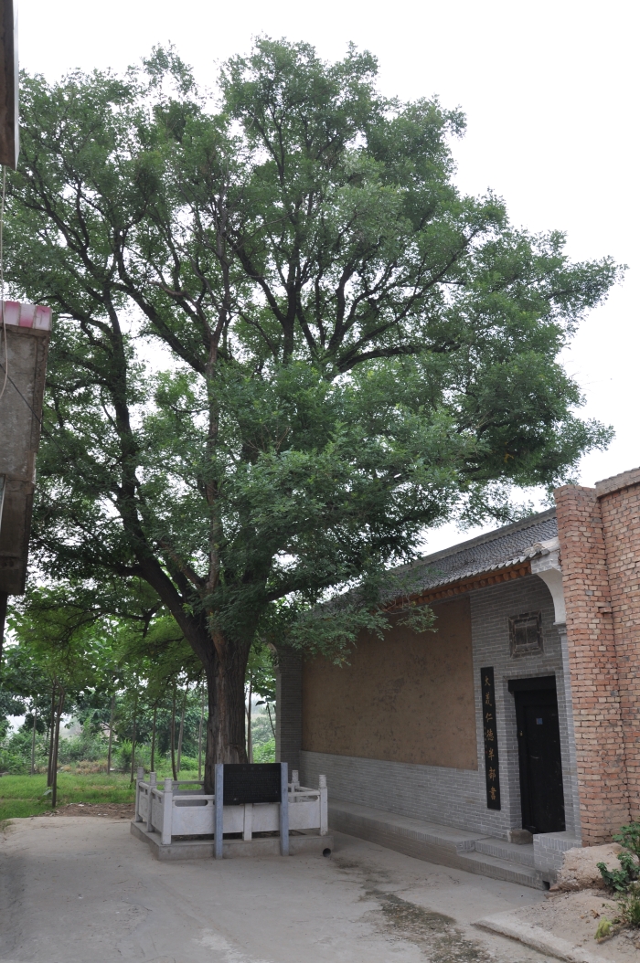 傅作义幼时栽植,寓意为立志成材,长大报国,在他和亲友们的精心管护下,树木长势茂盛。1938年冬日寇进村后,因挟傅作义长城、绥远抗战之恨,对全村进行了疯狂地报复性烧杀,这棵树则不幸成了日本鬼子任意迫害村民的“练刀树”、“活人靶”,树身也留下了数计刀伤。半个世纪过去了,这棵百年古槐不仅没有衰枯枯萎,而且更加挺拔昂劲。特别是树身上残留的一处永远不能吻合的刀痕和每天都在流淌的树液,既是日寇侵华的铁证,更是无辜受害的泪诉。为了牢记这一沉痛的历史,村民们又把“报国树”更名为“抗战树”。1957年4月,将军回归故里,站在树下,对乡亲们英勇无畏的抗日精神给予高度评价,对村民们惨遭日寇迫害深感内疚心愧。当晚,他住在树下堂弟傅作维家的西方,以表迟到的怀念之情。 [堂弟家门口 -]