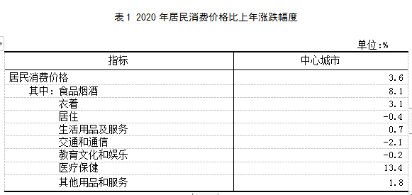 价格:全年中心城市居民消费价格比上年上涨3.6%。其中,食品烟酒价格上涨8.1%,生活用品及服务价格上涨0.7%。商品零售价格比上年上涨1.7%。