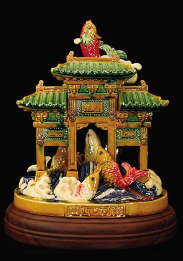 吕氏祖传琉璃在传承中创新,不断适应时代的发展,特别是近年来,凤凰吕氏琉璃坚持传统与创新相结合,积极挖掘研究历史遗存,多方试验复原河津宋金窑产品,目前已复原瓷枕等代表作品,得到了专家的肯定。同时探索研究开发现代文旅产品,其研发的鲤鱼跳龙门系列产品得到了社会广泛认可,多款产品成为河津乃至山西的文化名片。2017 年,吕谚荣的琉璃作品《鱼跃龙门》荣获第二届山西(运城)国际果博会传统工艺精品金奖。