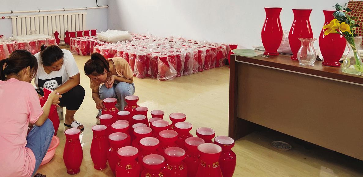 由于市场需要,也随着玻璃和陶瓷器皿上印刷技术的不断提高,闻喜嘉美花纸有限公司成立了玻璃花瓶修饰加工部,采用古典传统手工装饰及烧制方法,在把普通产品保质保量做好的同时,还打造出最精致最拿手的五种型号,受到了广大消费者的一致好评。他们用十年的时间精心打磨,只为把产品做成精品做到最好!这些产品直接销往法国、德国、迪拜等欧州国家。山西闻喜嘉美花纸有限公司总经理杨敏深有感触地说:看着这些用24k黄金点缀、彩金琪金等十多种颜色装饰而成的古色古香又有现代韵味的大花瓶图案,自己心中充满了喜爱。因为这里的每一个手法、技艺,都是经过传统手工艺人匠心独运,精雕细琢,细心上色,精心描色,之后再加以烘烤火候,经过一个月的打磨才做出的,如此珍贵的工艺品,是凝结智慧与爱心的艺术珍品。