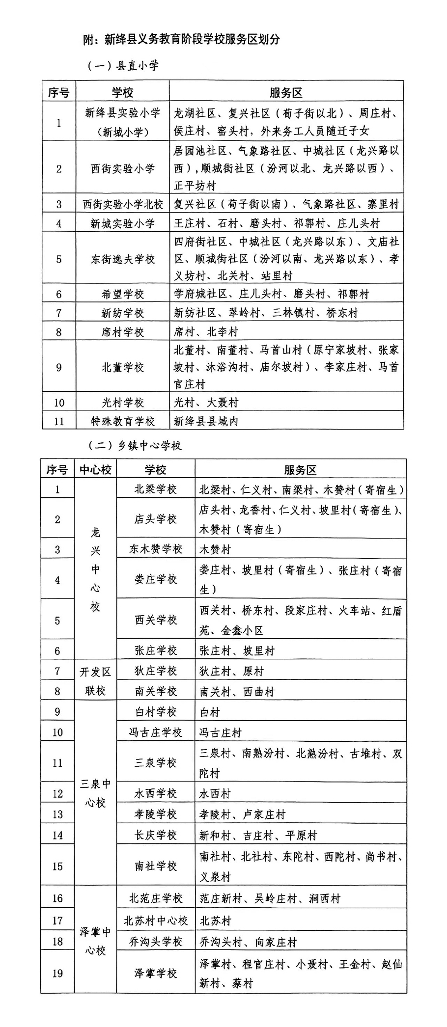(一)新绛县户籍适龄儿童均可在网上申报所在服务区的公办中小学校或民办学校(新绛海泉学校、新绛县新华学校、新绛县龙兴学校、新绛县育英学校的初一年级)。
