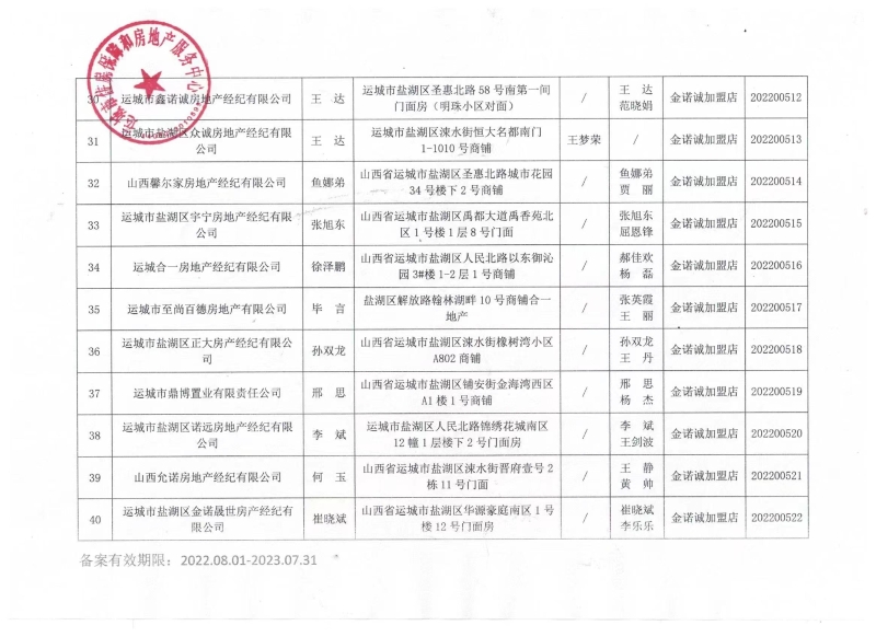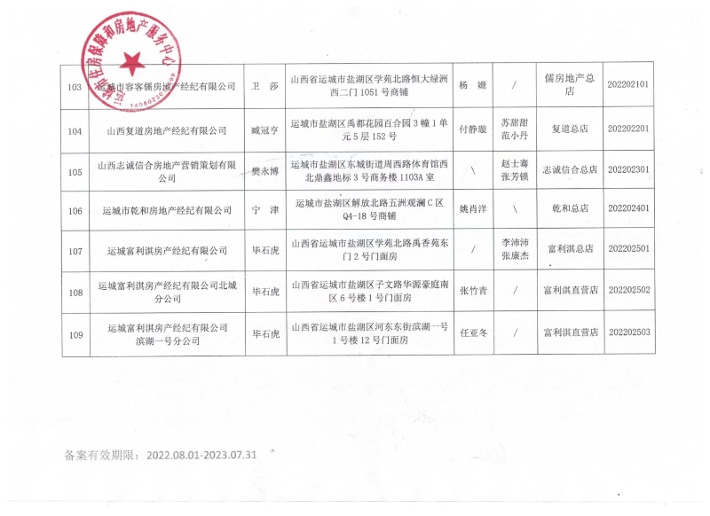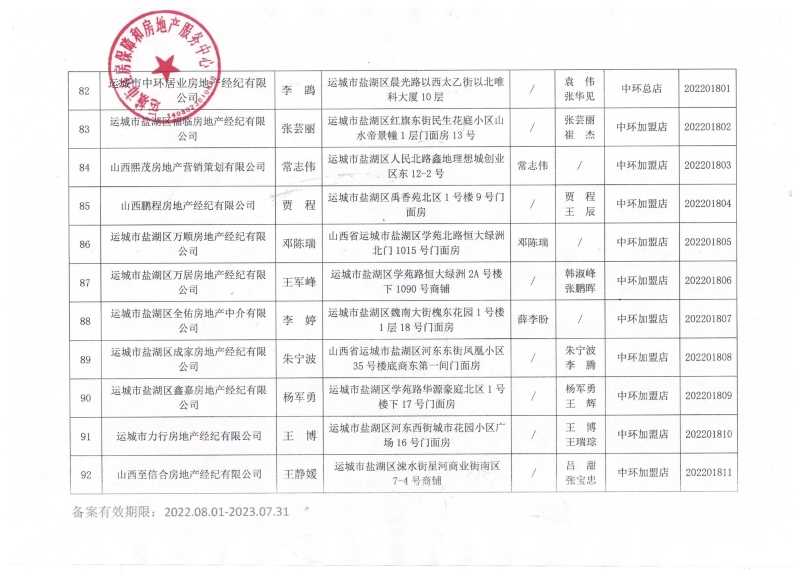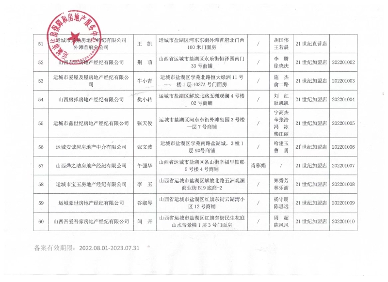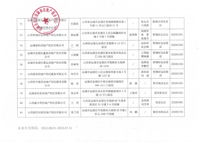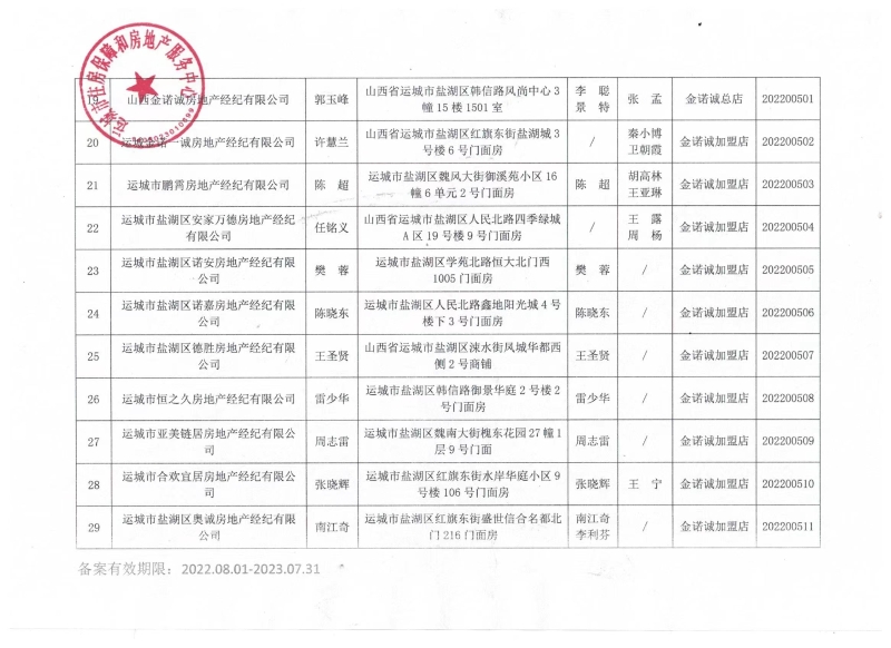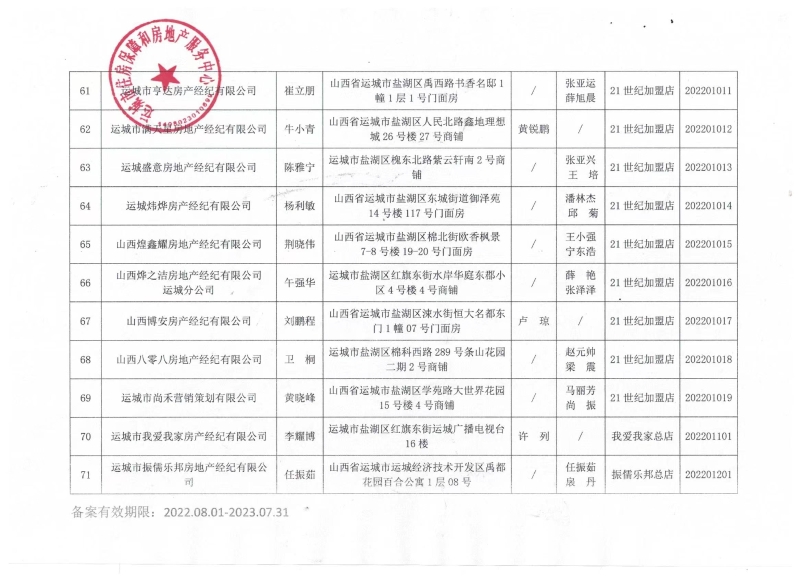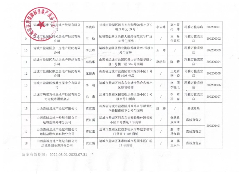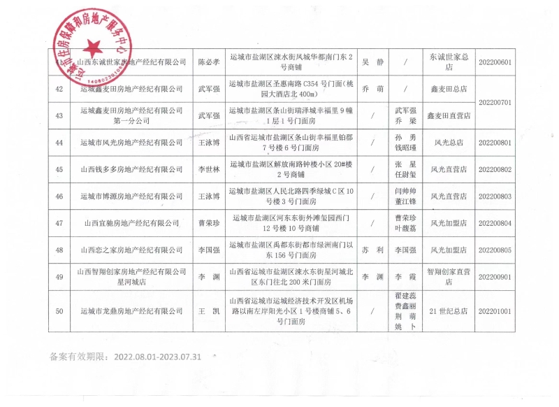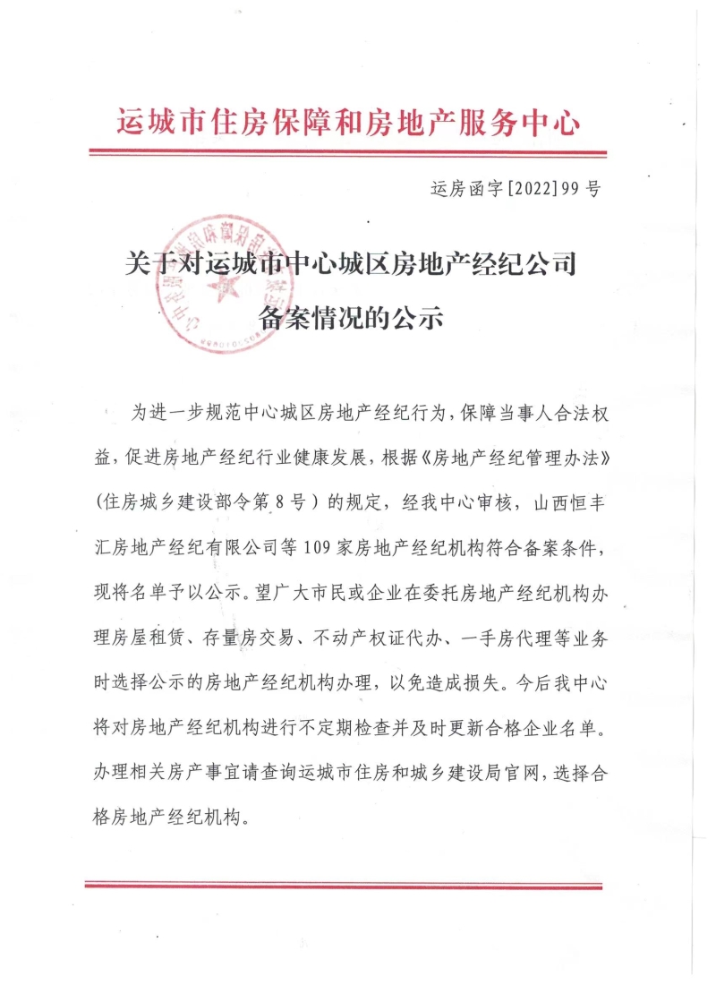 关于对运城市中心城区房地产经纪公司备案情况的公示