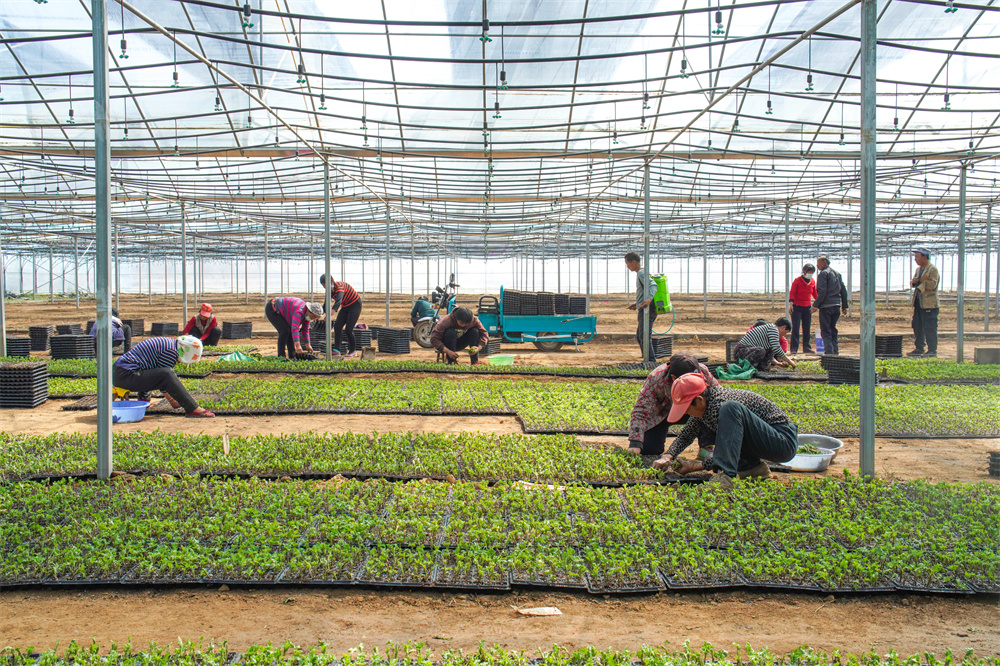 芮城县学张乡斜口村标准化育苗大棚内,扦插育苗现场一派热火朝天。