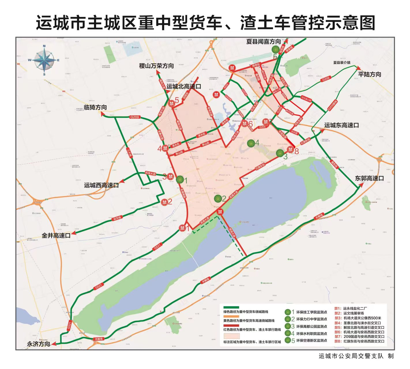 附件:运城市主城区重中型货车、渣土车管控示意图