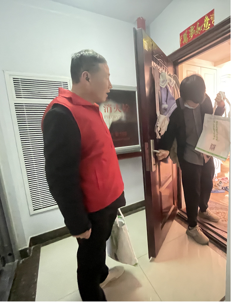 活动中,中心党员干部及志愿者们身着红马甲,积极发挥先锋模范作用,采用“包栋负责”“责任到人”方式,入户上门逐一排查安全隐患,对楼道中存在的乱堆乱放的杂物进行清理纠治。同时为居民派发“携手共建美好运城,同心争创文明城市”手提包,将文明城市建设的理念传递到居民家中,引导大家宣传文明,践行文明,享受文明。
