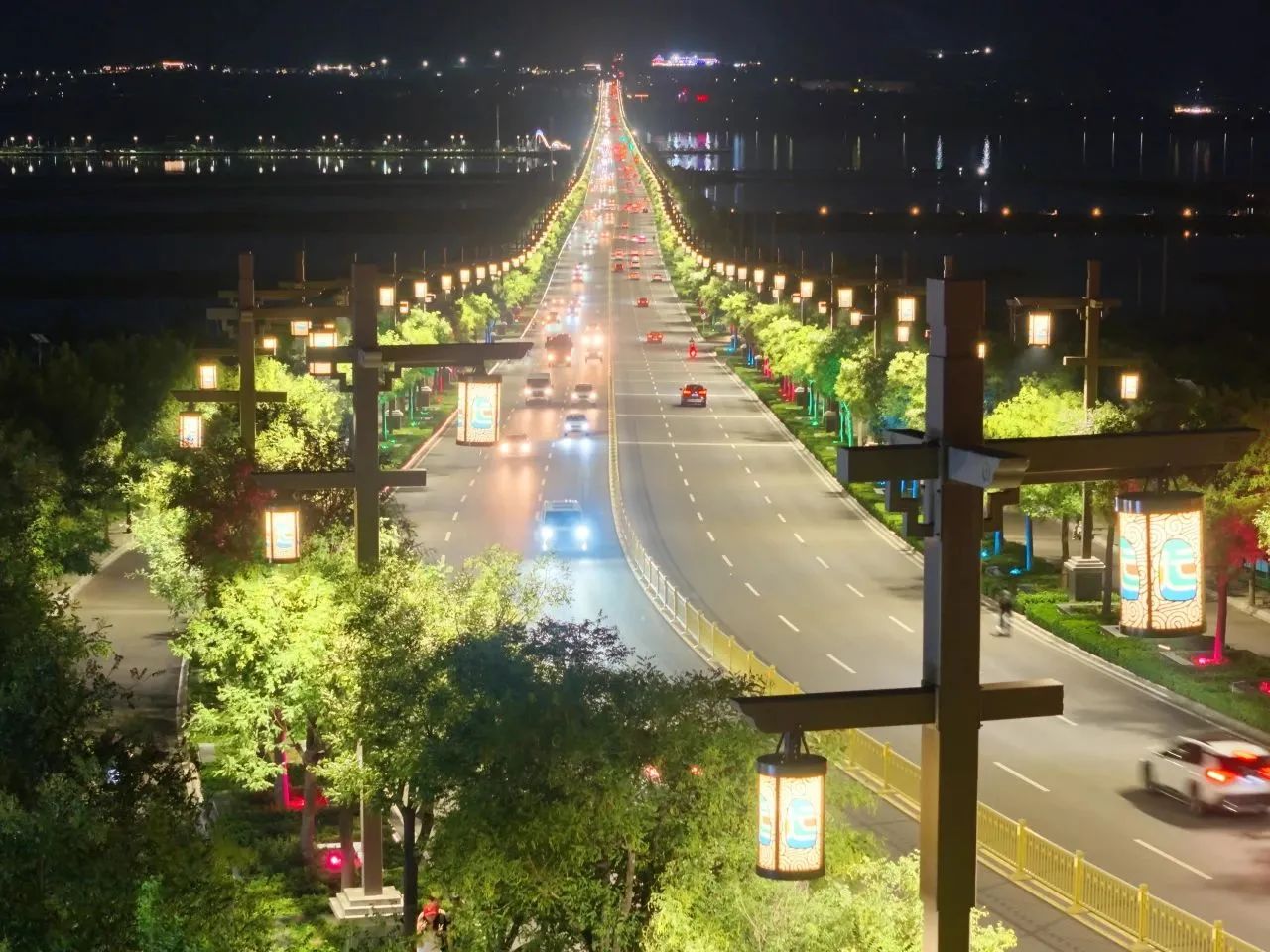 一到夜晚,盐湖是寂静深沉的,街道是热闹明亮的,周边形成鲜明对比。配上宽阔平整的道路,璀璨华灯串连成线,扮靓了整个解放南路(跨湖段),点亮城市夜景的同时,也催生了夜经济,吸引不少市民游客休闲娱乐、拍照打卡、放松身心,深度体验城市魅力。