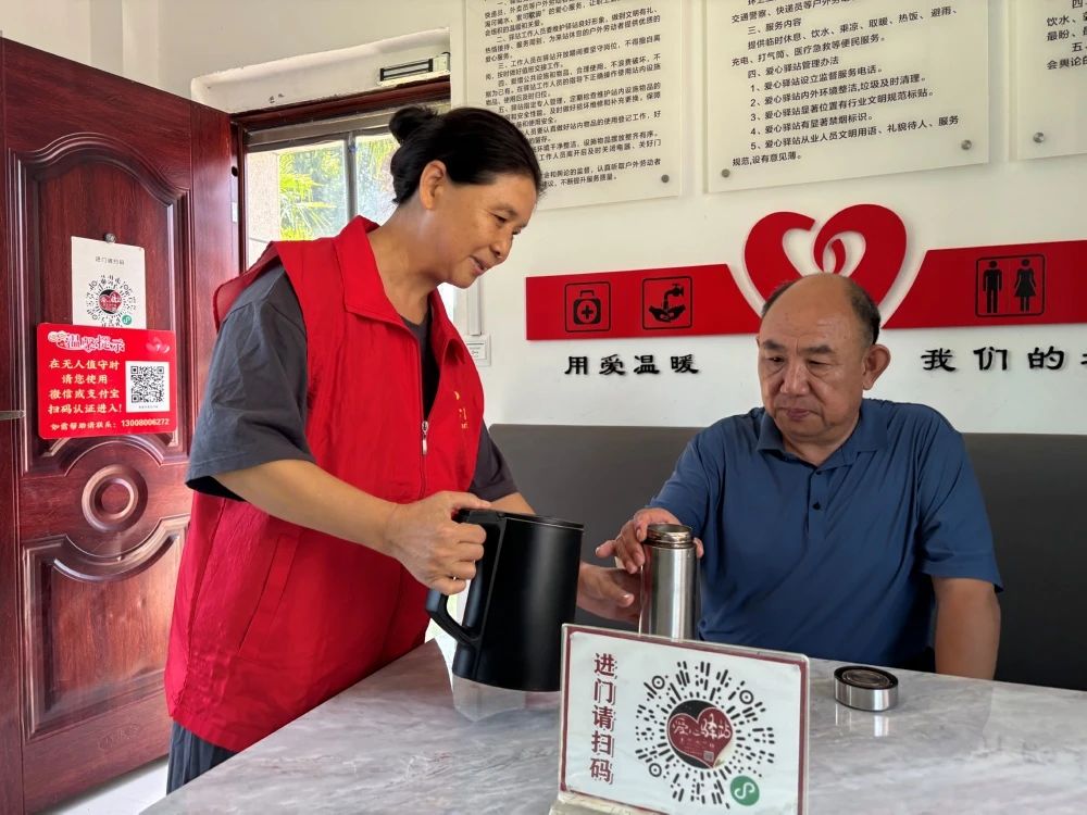 齐全的设施只是基础,最令人称赞的是驿站工作人员的温情服务,从点滴小事中可以探见。“您好,我给您倒杯温水吧,热水太烫了,好不好?”“现在温度很高,您可以在这里休息一下。”“里面有小药箱,给孩子贴个创可贴吧。”“这些水果是我从家里带来的,您可以尝尝。”……作为禹都公园爱心驿站(北门站)管理员之一,在同事和市民眼中,张彩琴是出了名的热情,不管是谁、不论在什么时间,只要走进驿站,她都会上前亲切地倒一杯热水、问一句冷暖。