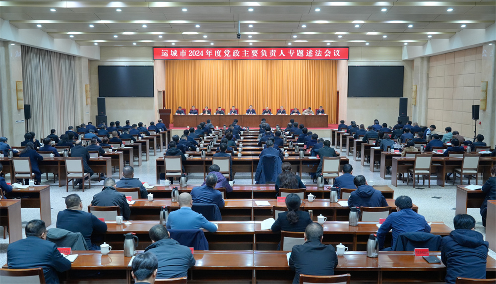 12月25日,我市召开2024年度党政主要负责人专题述法会议,深入学习贯彻习近平法治思想,认真落实中央和省委关于进一步加强市县法治建设的部署要求,压紧压实第一责任人职责,交流经验、查找问题、改进工作,推动法治运城建设走深走实。市委书记储祥好出席会议并讲话。市委副书记、代市长姚逊出席。市委副书记、政法委书记王立刚主持。市人大常委会主任那志茂出席。市领导李晓武、刁海鹏、赵晔、郭新武、杜中伟、刘春安、何伟,市检察院检察长出席。