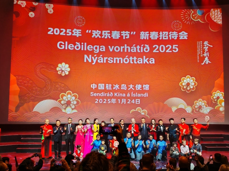 1月24日,中国驻冰岛使馆在冰岛首都雷克雅未克举办“欢乐春节”2025新春招待会。中国驻冰岛大使何儒龙夫妇,冰岛执政三党之一的人民党主席、社会事务与住房部长因加·塞兰,冰岛救援协会主席,驻冰使节,在冰华侨华人、留学生等约700人欢聚一堂,共庆中国蛇年新春。我省文艺演出团表演了鼓乐舞蹈、乐器独奏、古彩戏法、杂技魔术、山西民歌与冰岛歌曲,展现了浓郁山西地方文化特色和中国优秀传统文化独特魅力,获得阵阵掌声。