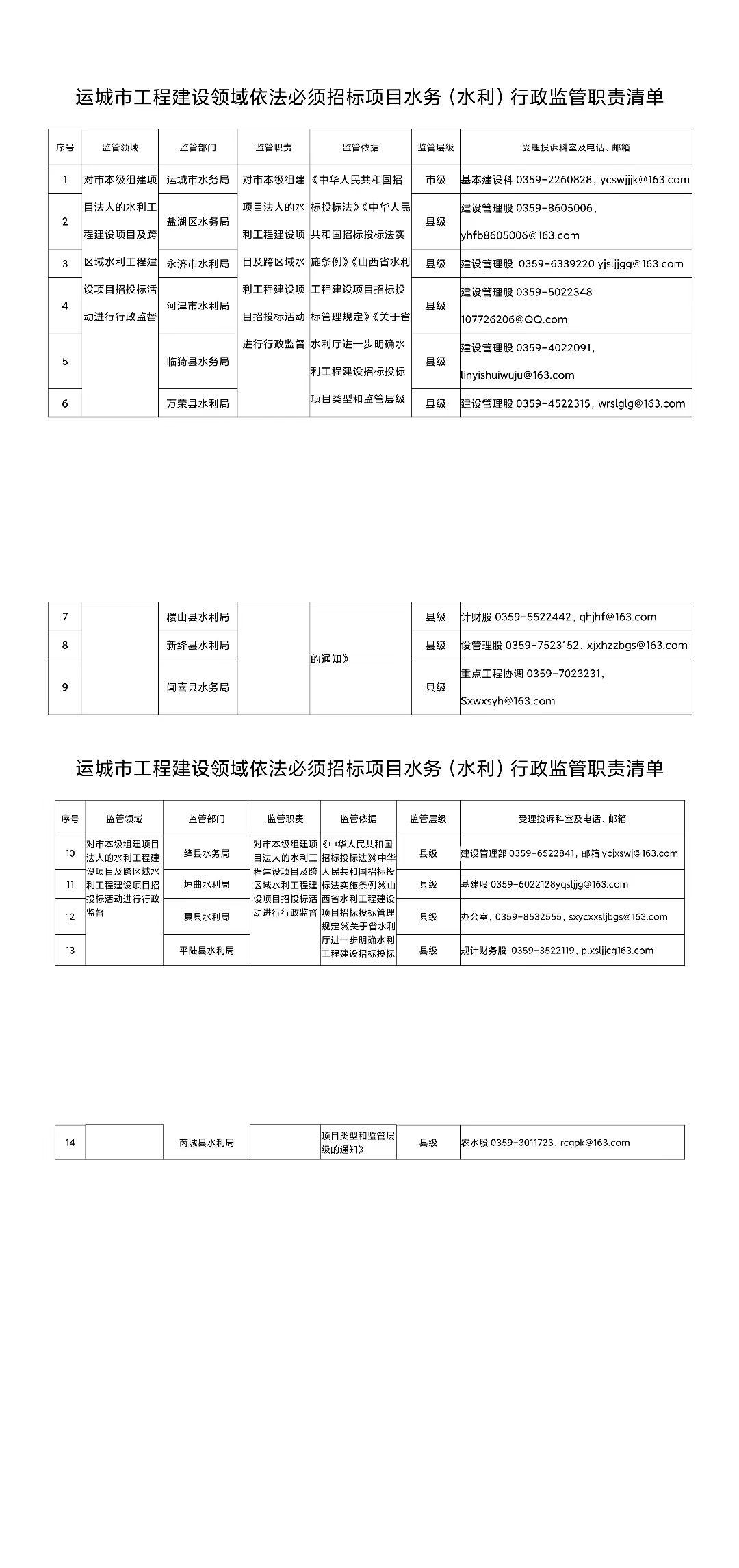 运城市工程建设领域依法必须招标项目水务(水利)行政监管职责清单