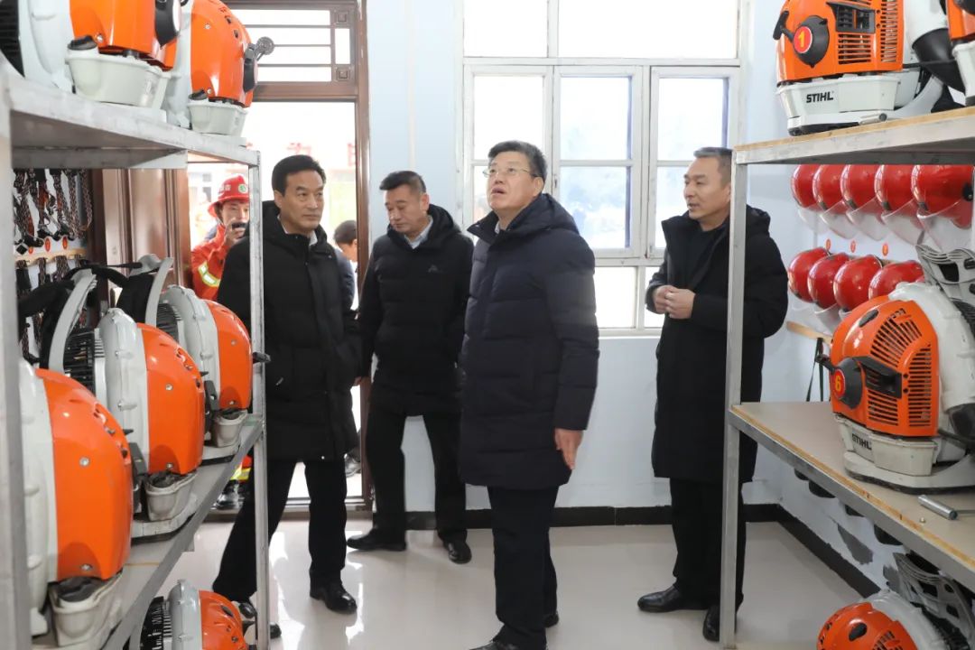 在张店风口入山检查站,杜中伟一行与卡口值守人员亲切交谈,了解春节生活准备情况,询问卡口管理职责。在县级森林防火专业队驻地,先后查看了防火物资储备库、文化活动场所以及食堂,并要求林业部门节日期间要合理安排好坚守一线人员的生活,使其感受浓浓的关切和温暖。
