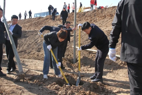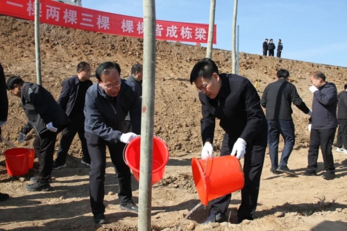在下船庄汾河大坝植树点,“践行绿水青山,建设生态山西”“一棵两棵三棵,棵棵皆成栋梁”等一幅幅红色标语在春日微风的吹拂下鲜艳夺目。县四大班子领导及机关、乡镇干部和教师手持铁锹,精神抖擞的投入到紧张的劳动当中。大家或二人或三人一组,干劲十足,热情高涨,现场一派繁忙景象。你扶苗、我培土,你围堰、我浇水,道道工序有条不紊、认真细致,充分展示了新时代机关干部“奋发有为、团结协作”的精神面貌。经过2个小时的辛苦劳动,1500多株碧玉杨树苗被栽植进沃土,挺立在汾河滩涂,为古绛大地增添了一抹抹新的绿色。