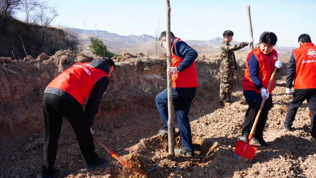 在义务植树点,解芳等迅速投入到植树活动中,挥锹铲土、扶树填坑、踏土夯苗、围堰浇水,接连种下白皮松、五角枫、国槐等树木。一棵棵新树昂然挺立,在和煦的阳光下展现出蓬勃生机。