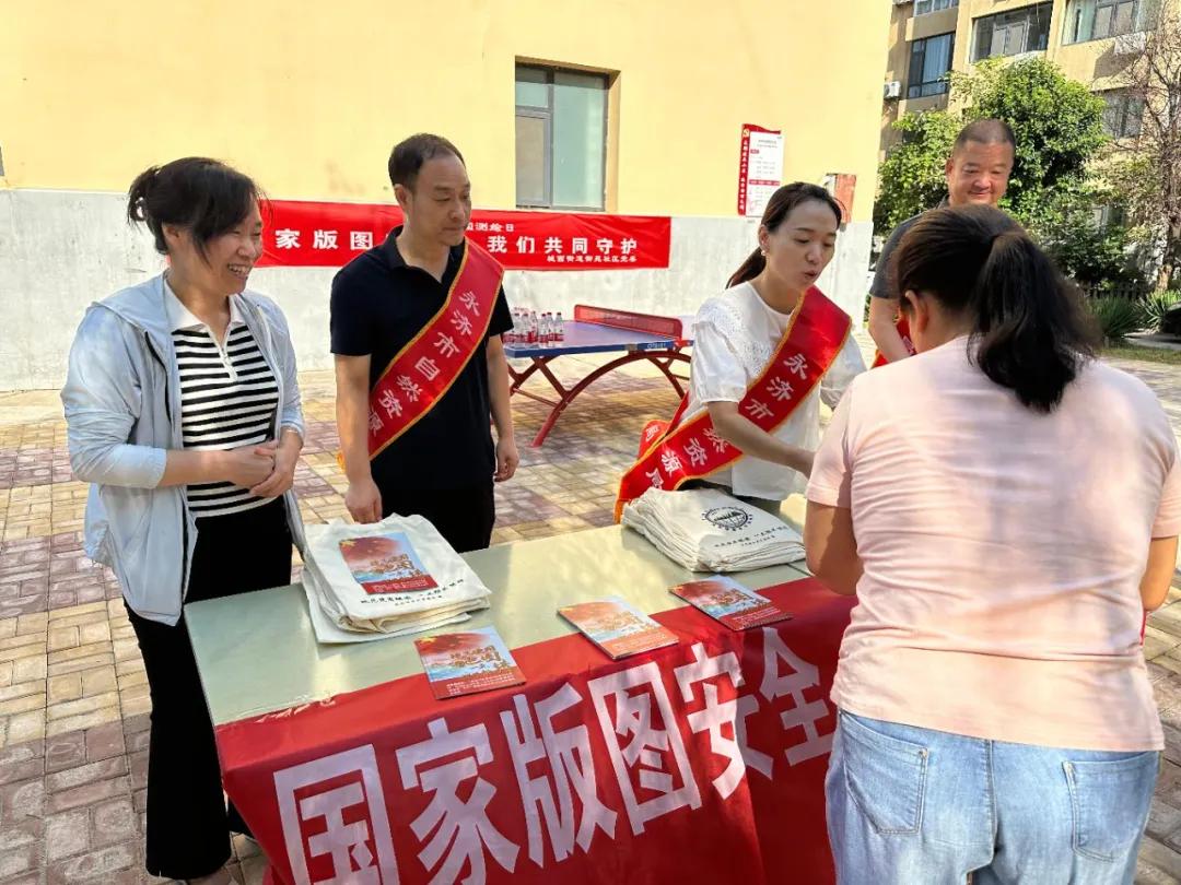 二是开展测绘宣传进社区活动。8月29日上午,永济市自然资源局走进御苑社区,与社区工作人员共同开展共筑共建活动。向社区居民宣传测绘法及国家版图知识,并耐心地给大家讲解如何规范使用地图,如何辨识问题地图,以及标准地图的下载方法,倡导市民规范使用地图。活动现场共计发放宣传资料及纪念品200多份,回答群众咨询30余人次。