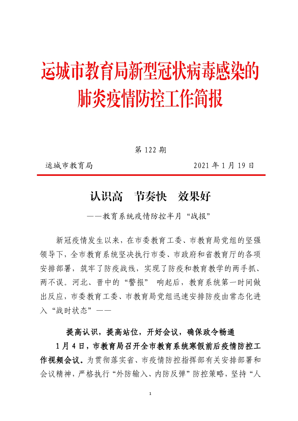 运城市教育局新型冠状病毒感染的肺炎疫情防控工作简报第122期