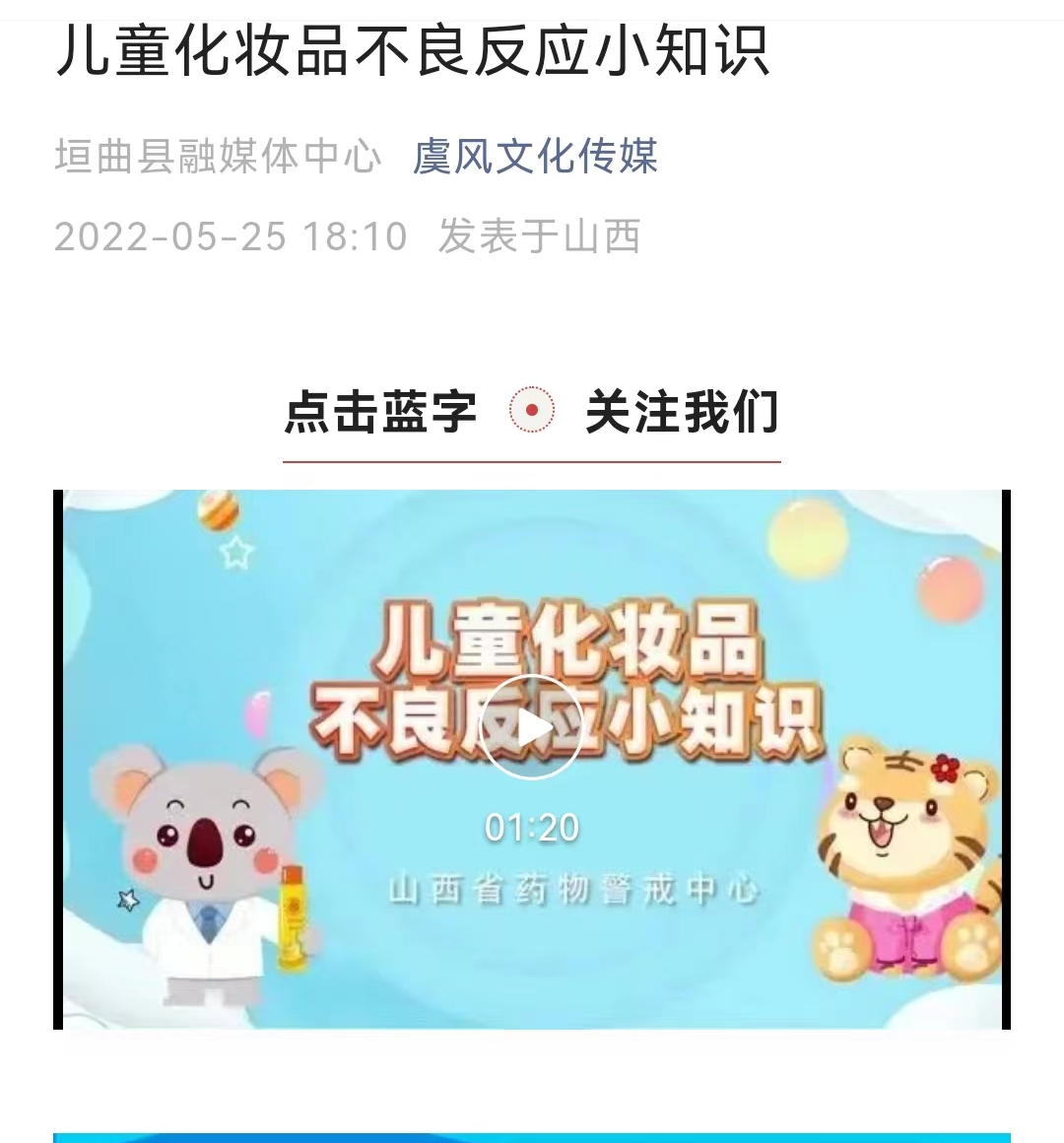 根据省、市局2022年化妆品安全科普宣传周活动安排部署,为进一步加强儿童化妆品监管,更好地守护孩子们的健康,提升公众对儿童化妆品的认知水平,落实企业质量安全主体责任。垣曲县市场监管局于5月25日通过电视、抖音、微信、LED显示屏等多种渠道开展“安全用妆,携手童行”为主题化妆品安全科普宣传活动。