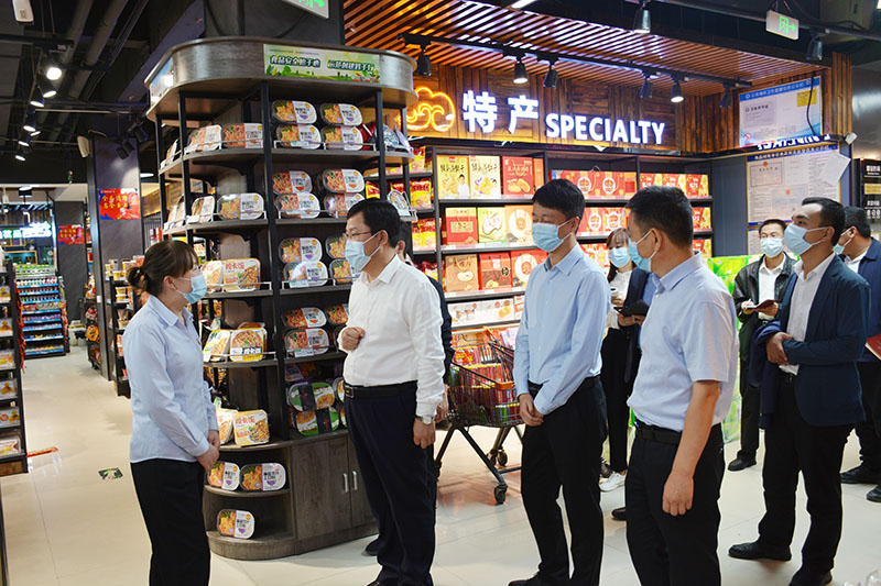 值此中秋佳节来临之际,为统筹做好疫情防控、市场供应、食品安全等各项工作,8月31日,夏县县委书记薛永琦带领县委副书记秦晓军、副县长赵炜博及县市场监管局、县工信科局等部门负责人,对百惠超市中秋节前市场疫情防控和食品安全工作进行调研。