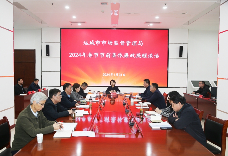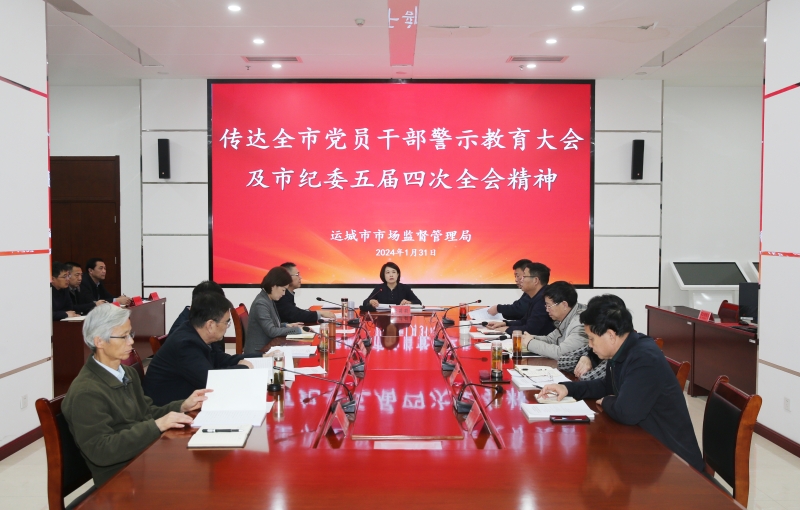 1月31日,全市党员干部警示教育大会及市纪委五届四次全会后,运城市市场监管局第一时间召开会议迅速传达贯彻落实。党组书记、局长景莉莉作讲话。党组成员、驻局纪检监察组组长张岩进行集体廉政提醒谈话。会议由党组成员、副局长、二级调研员贾文生主持。局领导班子成员、驻局纪检监察组,机关各科室和直属单位负责人参加会议。
