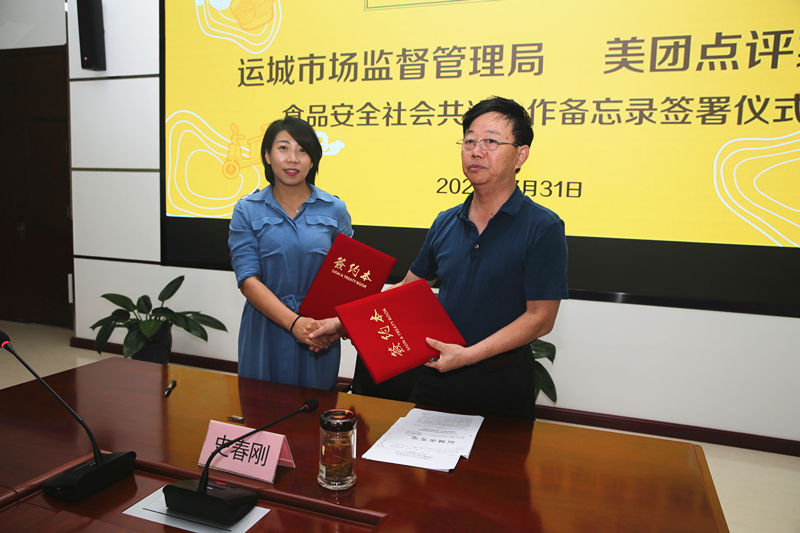 7月31日,运城市市场监管局与美团签署战略合作备忘录,目前在网络餐饮食品安全方面,职能部门与网络餐饮企业以签署合作备忘录,明确双方在“信息互通、资源共享、明确责任、有效协作”的原则上,建立健全政府推动、部门牵头、平台协同、网店自律、社会监督的社会共治体系在省内尚属首家。