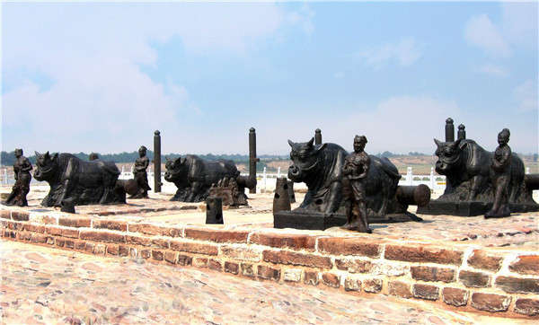 四尊铁牛,是迄今发现的历史最早、体积最大、份量最重、数量最多、工艺最精的黄河渡口铁牛,是中华古代文明成就的重大发现。联合国副秘书长冀朝铸1991年8月30日亲临蒲津渡遗址,题写了中英文:“蒲津古渡,重放异彩”。1994年元月31日江泽民主席视察时连声称赞:国宝!国宝!并作亲笔题写:“蒲津渡遗址”。同时嘱咐文化部门尽快拿出保护方案。