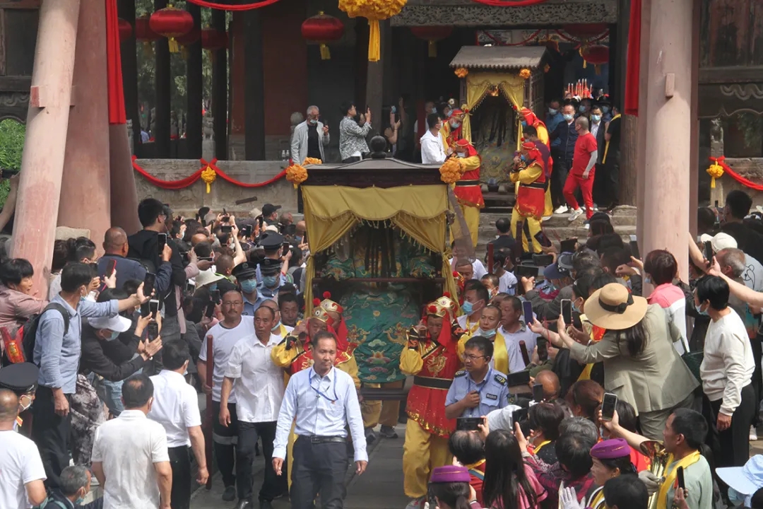 5月19日,农历四月初八,一年一度的解州传统古庙会达到高潮——充满浓郁民俗文化味道的“关帝巡城”活动盛装举行,吸引了千余名来自福建、河南、山东、江西及上海、北京等地的信众。当天适逢“中国旅游日”,解州关帝庙景区对全国游客实行半价优惠。这些慕名而来的远客和本地群众共计数万人,共享了这道民俗文化盛宴。