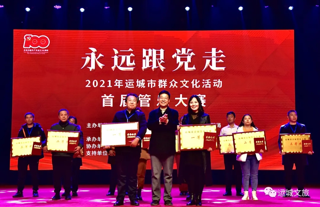 12月12日,由运城市委宣传部、市文旅局、市文学艺术界联合会联合主办,市群众艺术馆、市音乐家协会承办的“永远跟党走”2021年运城市群众文化活动首届管乐大赛在盐湖会堂举行。运城市委常委、宣传部部长、统战部部长王志峰出席,并为获奖参赛队伍颁奖。