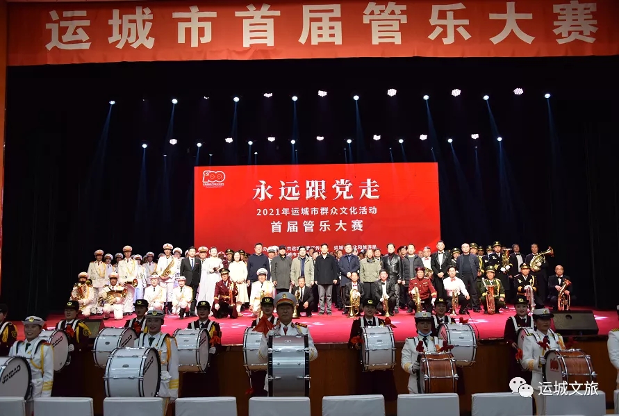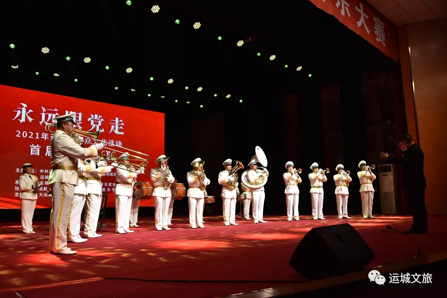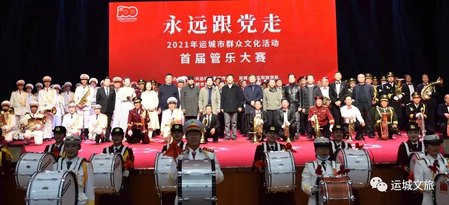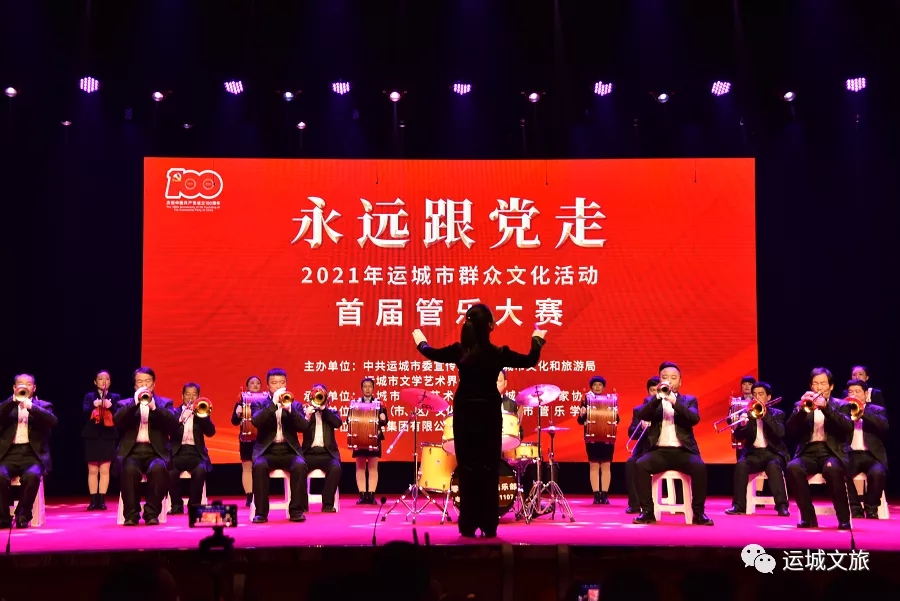 “永远跟党走”2021年运城市群文活动首届管乐大赛是运城市开展庆祝中国共产党成立100周年“永远跟党走”主题群众文化系列活动之ー,旨在充分展示全市管乐发展成果,推动群众管乐队伍发展壮大,进一步促进我市管乐队伍的传承发展。