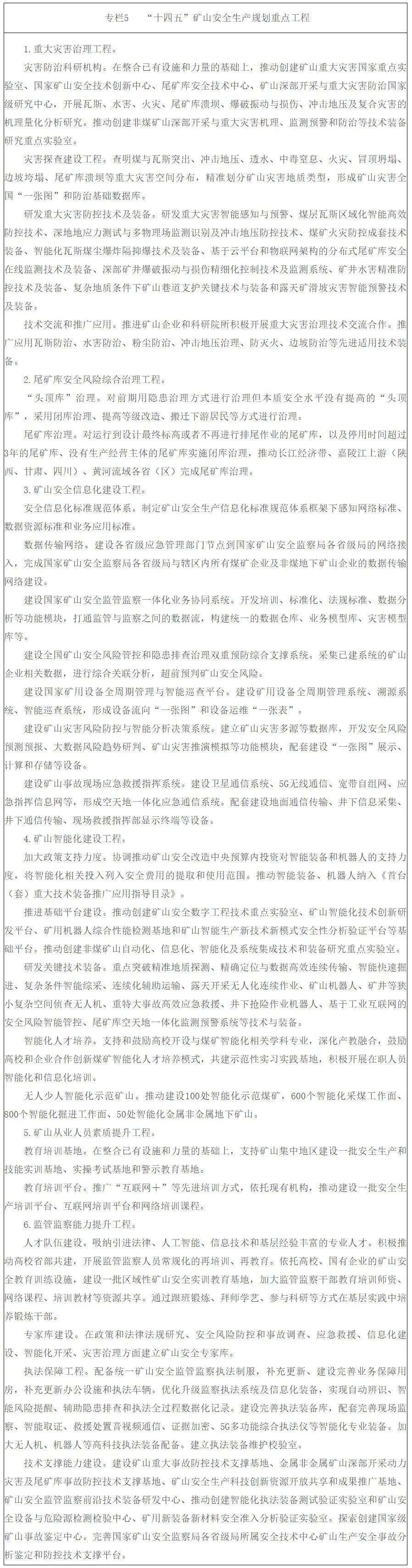 应急管理部 国家矿山安全监察局关于印发《“十四五”矿山安全生产规划》的通知